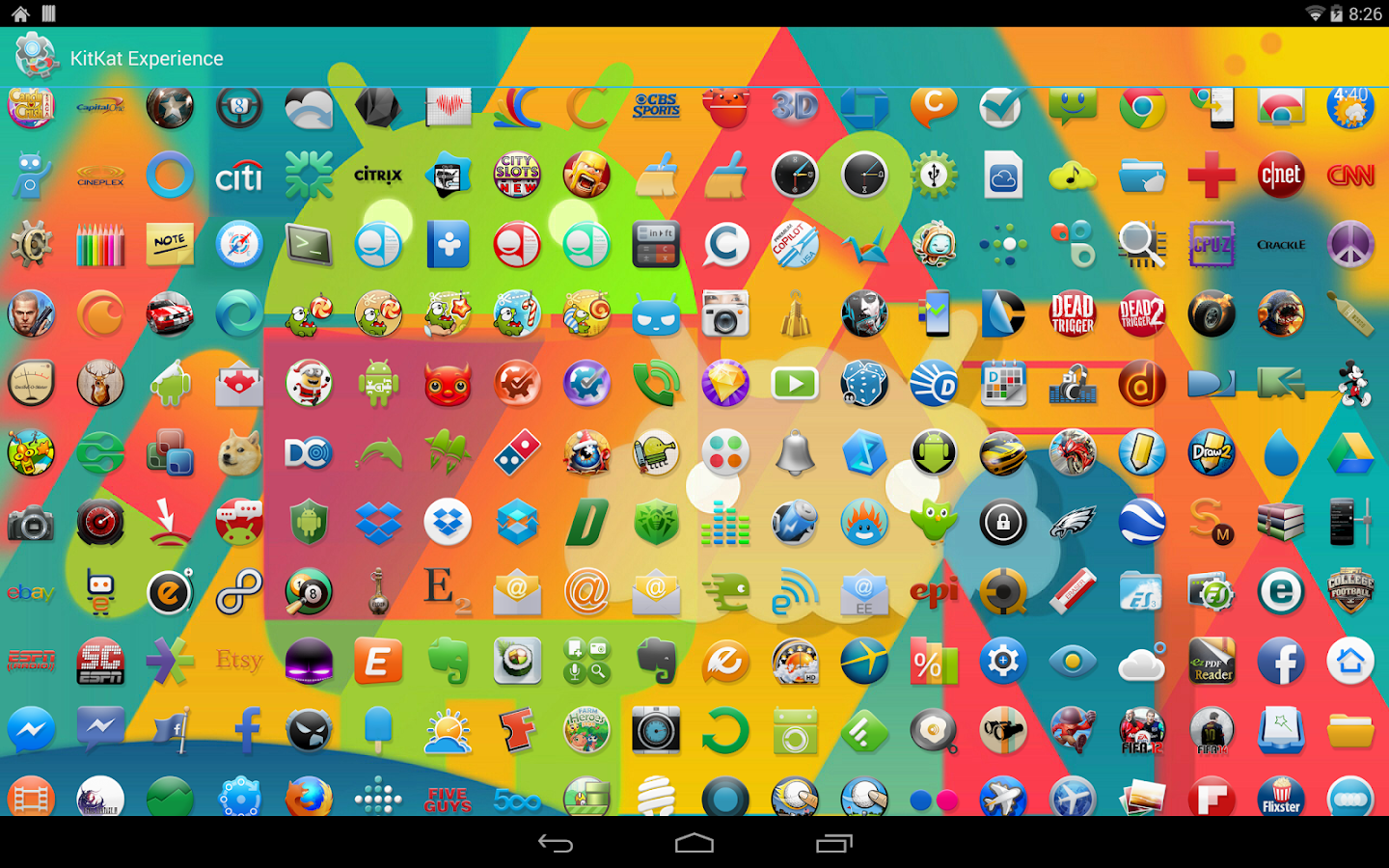 - KitKat Experience Icon Pack(s) - Over 525+ Android 4.4 Kit-Kat inspired icons, completely custom-designed icons inspired by latest Nexus 5 and Android 4.4 releases! Feel free to use built-in icon requester included in app or e-mail any requests you may have.